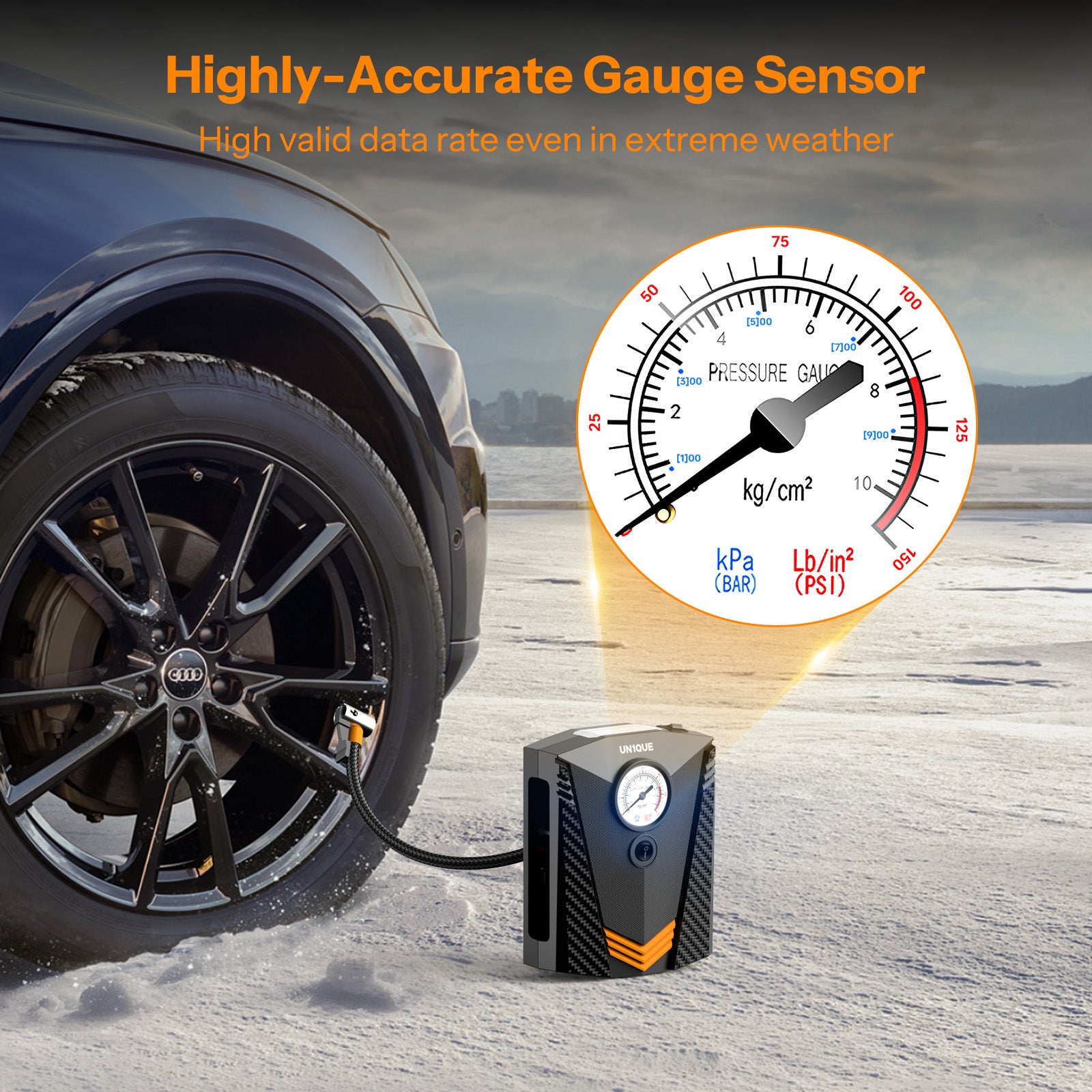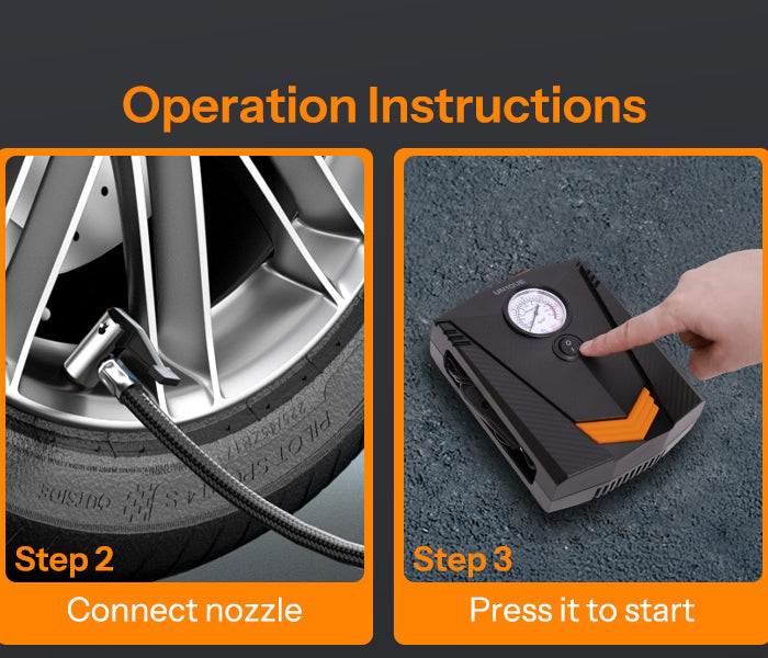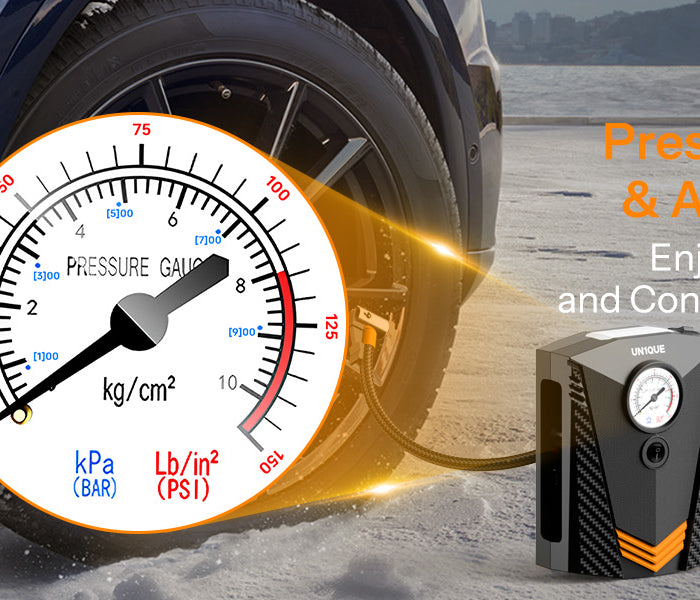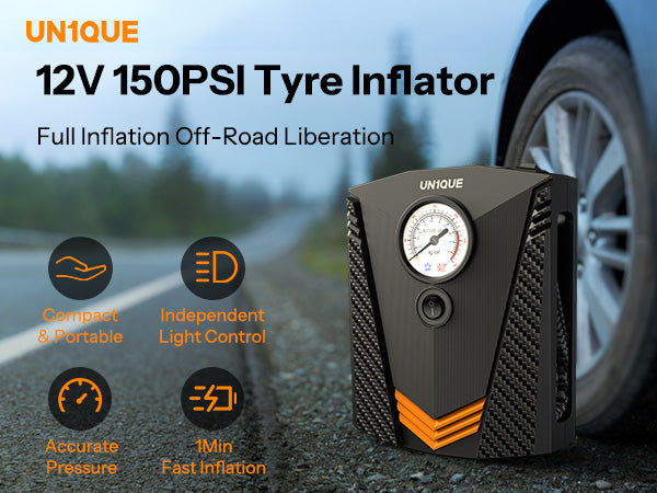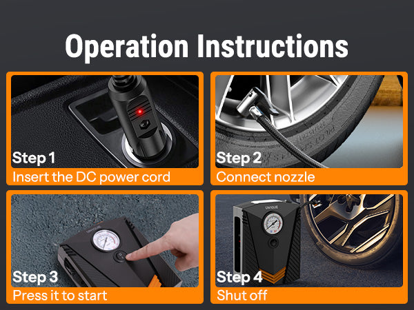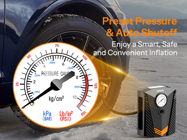 With maximum pressure 150 PSI and air flow 20L/min, high rated Power it can inflate the R17 car tire from 0 to 35psi under 5 minutes,R14 car tire under 3 minutes. It's much faster and more effective than traditional pumps, and comes with an real-time accurate tire pressure gauge.